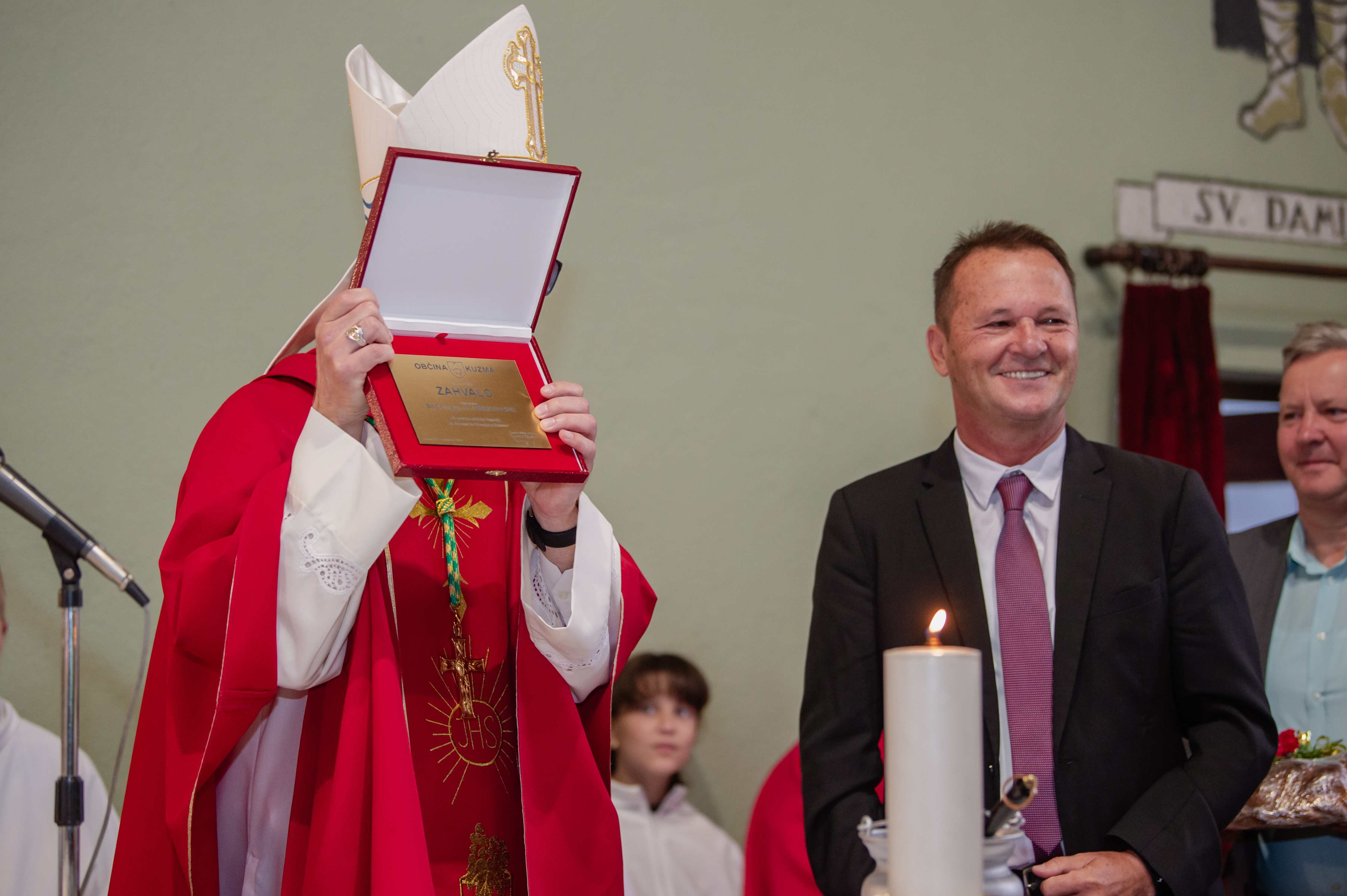 Včeraj, 28.9.2025 smo v naši župnijski cerkvi praznovali god župnijskih zavetnikov Kozma in Damijana. Sveto mašo je vodil msgr. dr. Janez Kozinc, soboški škof. Pri sv. maši je potekalo tudi obnovitev zakonskih obljub zakoncev jubilantov. Na koncu sv. maše pa je škof blagoslovil tudi šolske torbe in otroke. Pred župnijsko cerkvijo po sv. maši je potekalo tudi druženje z škofom ob jedači in pijači, ki so jo pripravili verniki. Manjkala pa niti ni glasba. Hvala vsem za pomoč in pripravo te lepe slovesnosti.