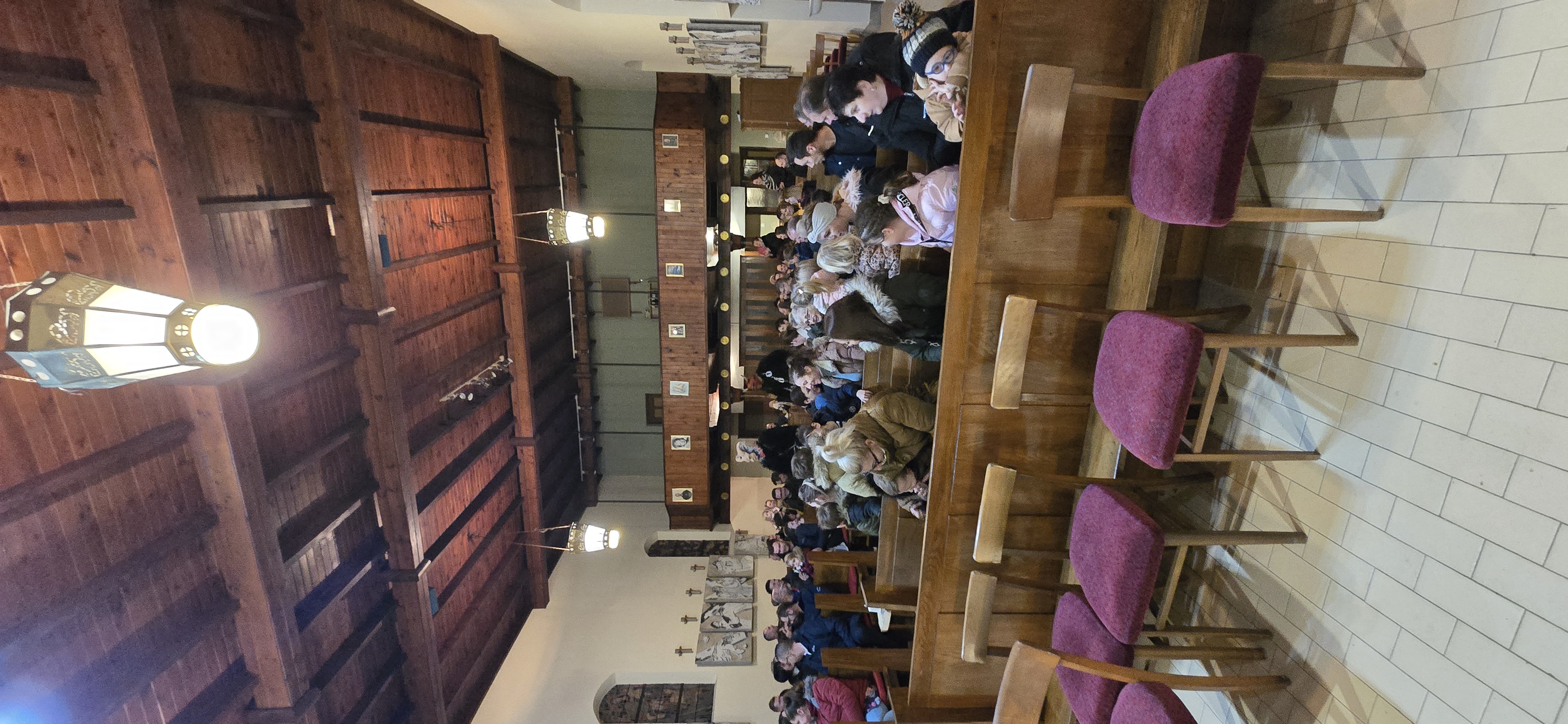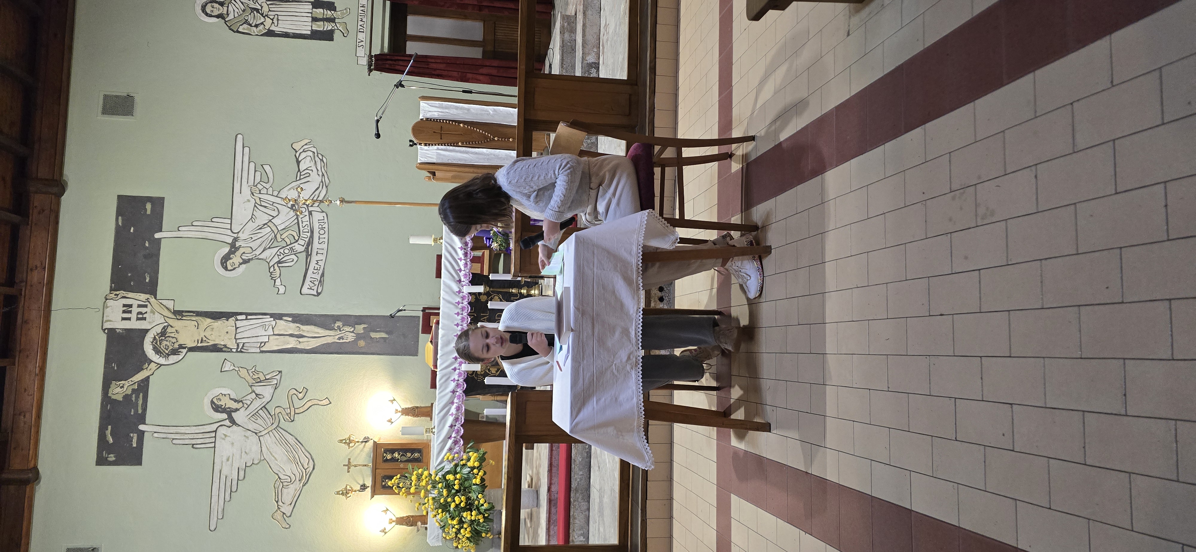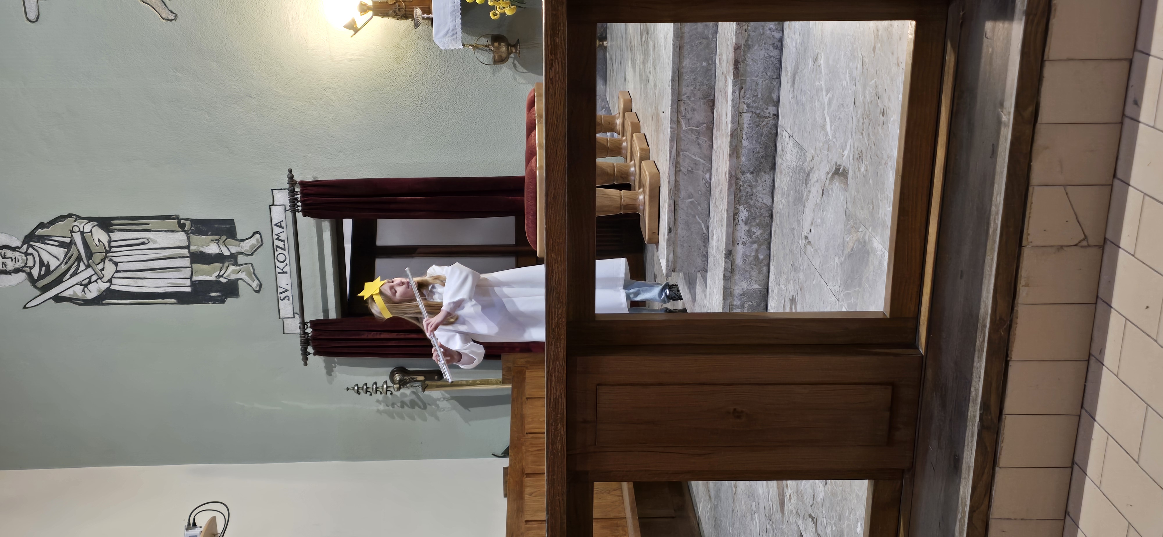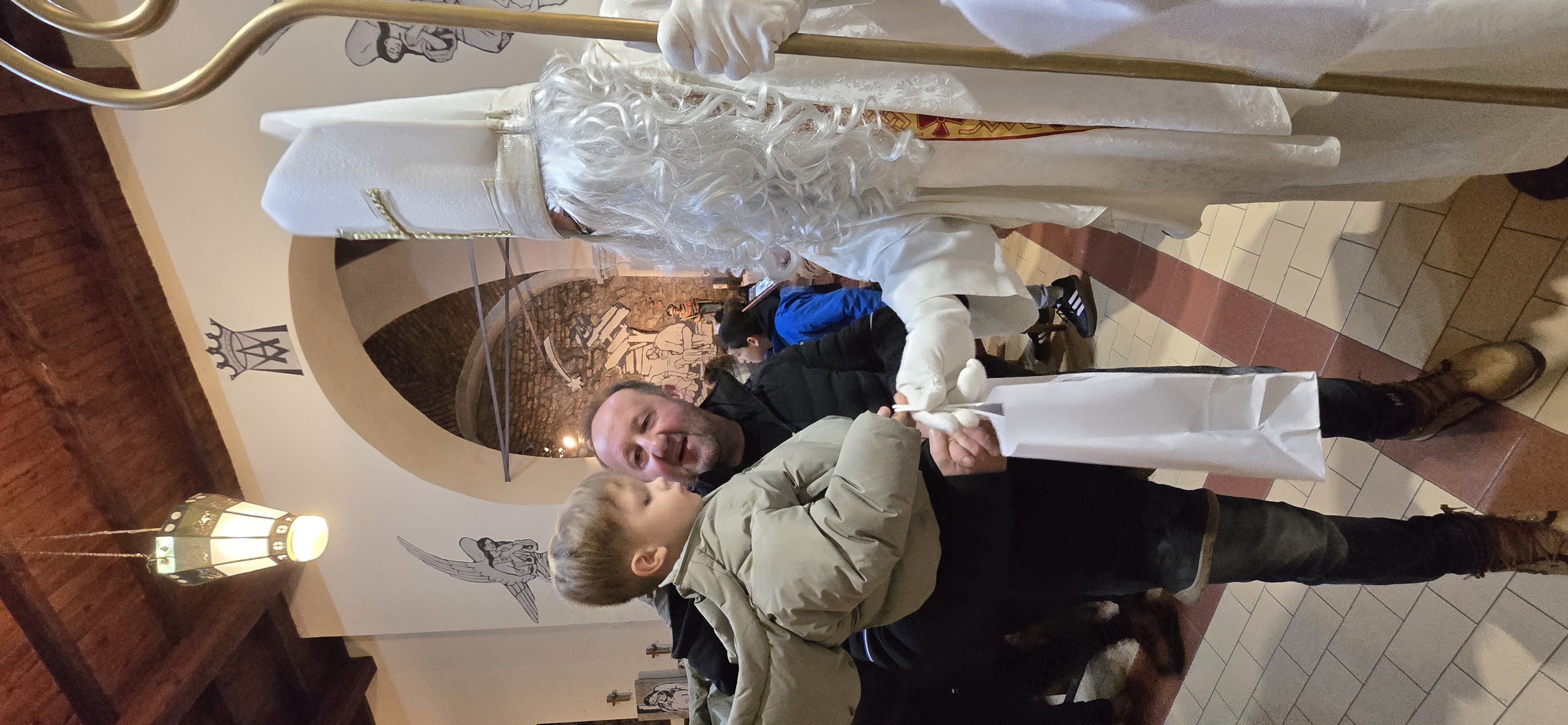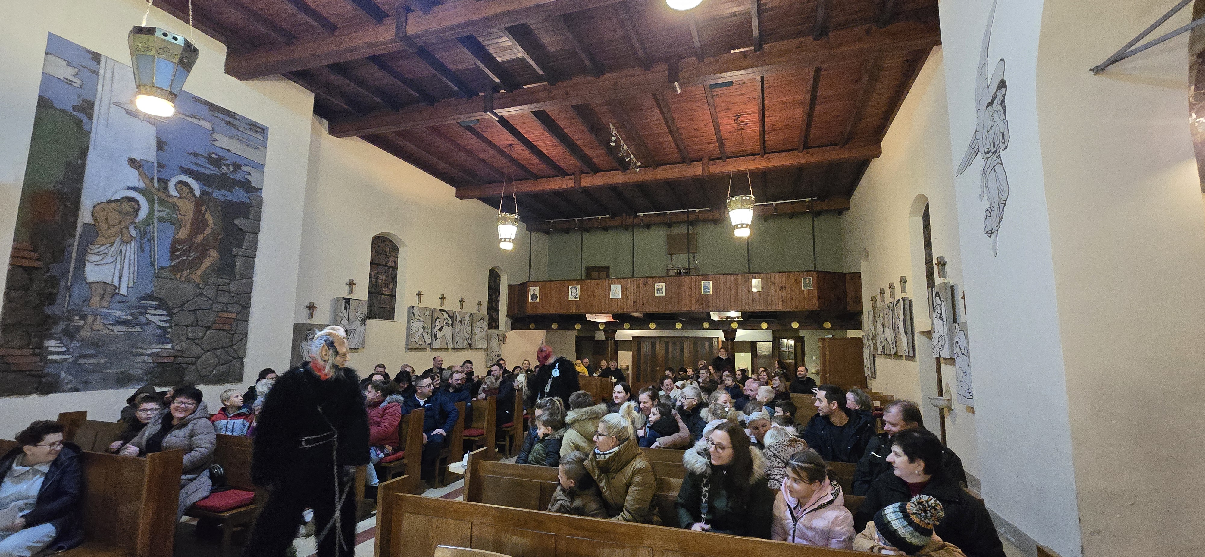 Današnje čakanje na svetega Miklavža je bilo malce mučno, minute so se vlekle...Medtem ko so veroučenci uprizorili igrico, so naši najmlajši vedno znova pogledovali nazaj proti vratom cerkve. A ko se ja pojavila brada svetega Miklavža, je vsem zadišalo po sladkih pričakovanjih in povečalo se veselje v cerkvi. Za piko na i je ob koncu večera v župnišču zadišalo po pici, kar je veroučence še posebej navdušilo.