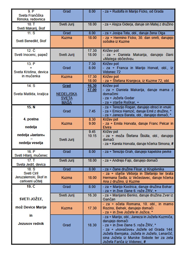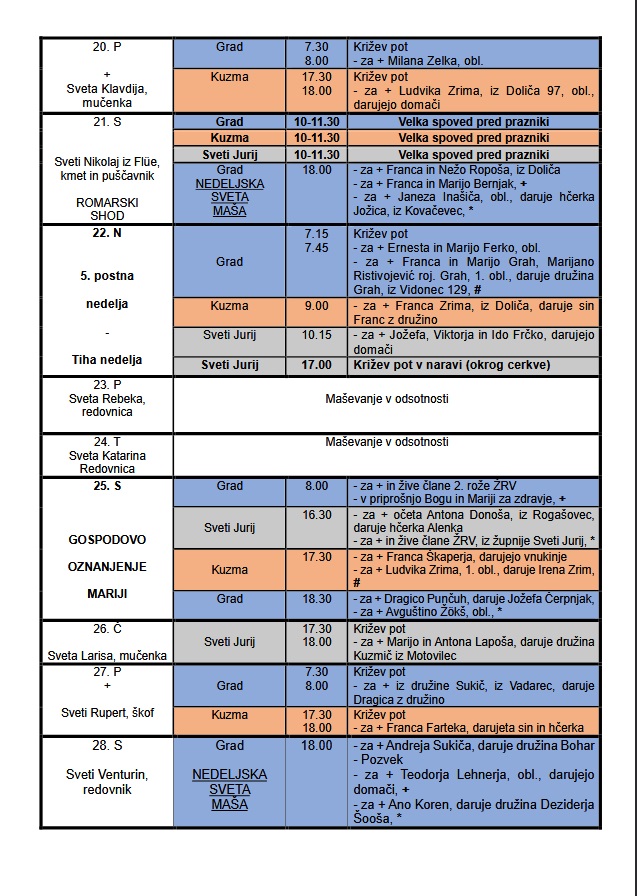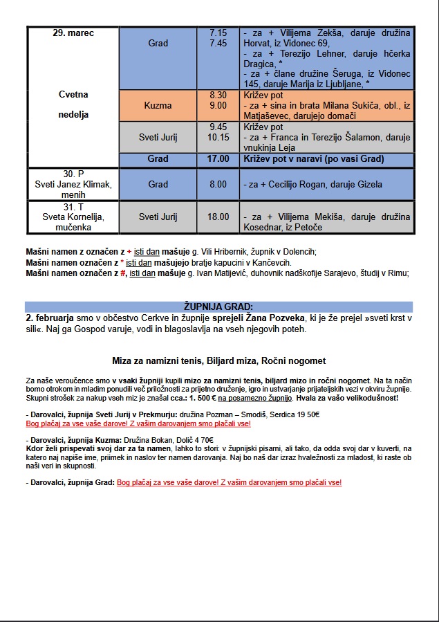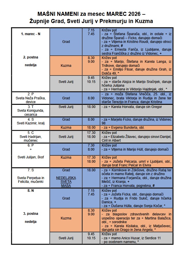 MAŠNI NAMENI - MAREC 2026